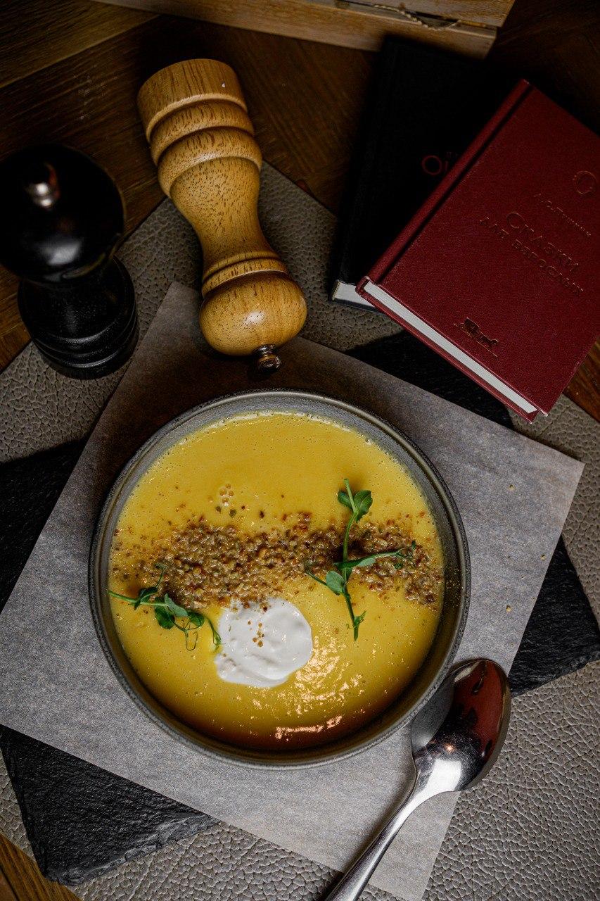 Крем-суп из тыквы с подкопченной сметаной